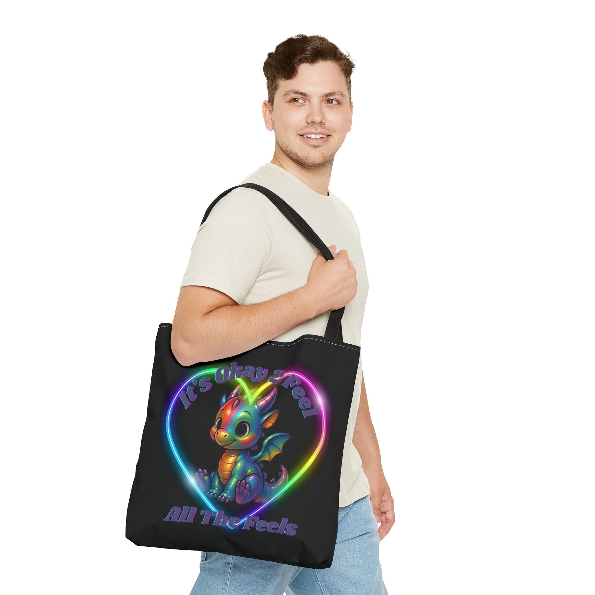 Adorable rainbow dragon tote with a cute saying, perfect for carrying your essentials in a fun and unique way. This tote bag is relevant to dragon lovers, fantasy enthusiasts, and those who appreciate colorful and whimsical accessories. Ideal for everyday use, shopping trips, carrying books, or as a gift for birthdays, holidays, and fantasy-themed events.